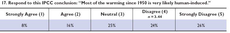 of whether human activities are at the root of climate change, with just over 50