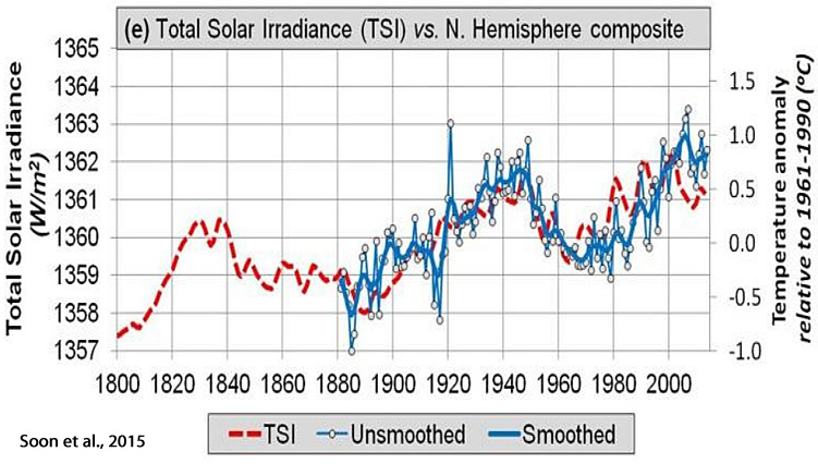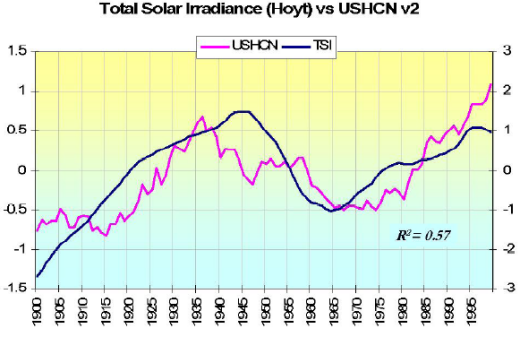 “...most of the temperature trends since at least 1881 can be explained in terms of solar variability, with atmospheric greenhouse gas concentrations providing at most a minor contribution.